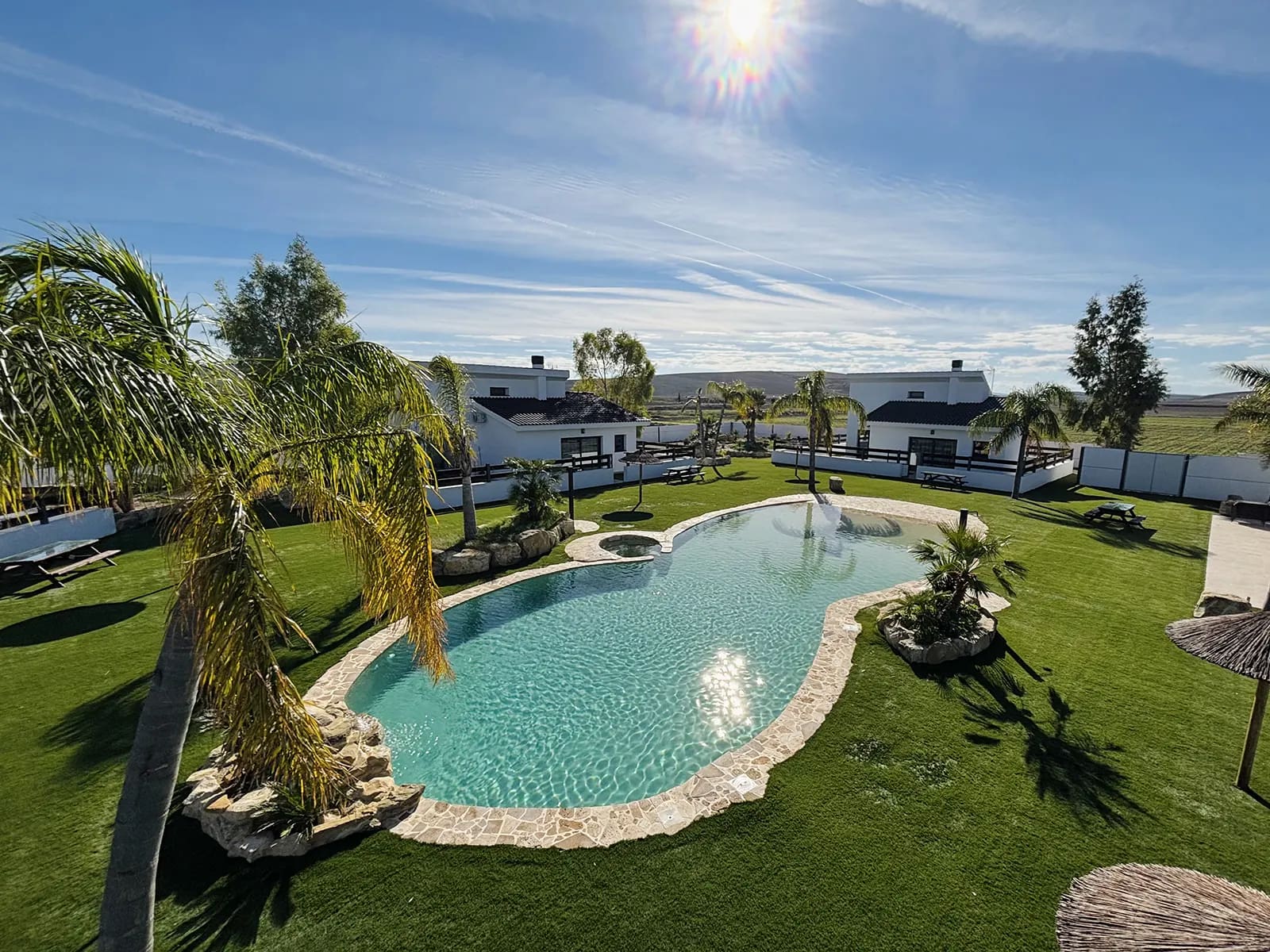 La piscina y las zonas comunes del Complejo Rural Entre Cortijos están diseñadas para que cada momento de su estancia se convierta en una experiencia de descanso, diversión y desconexión en plena naturaleza.